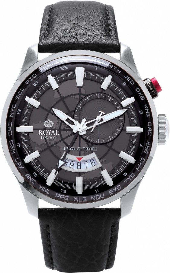 Černý ciferník s ukazatelem času, vteřinovou ručičkou a datumovkou.