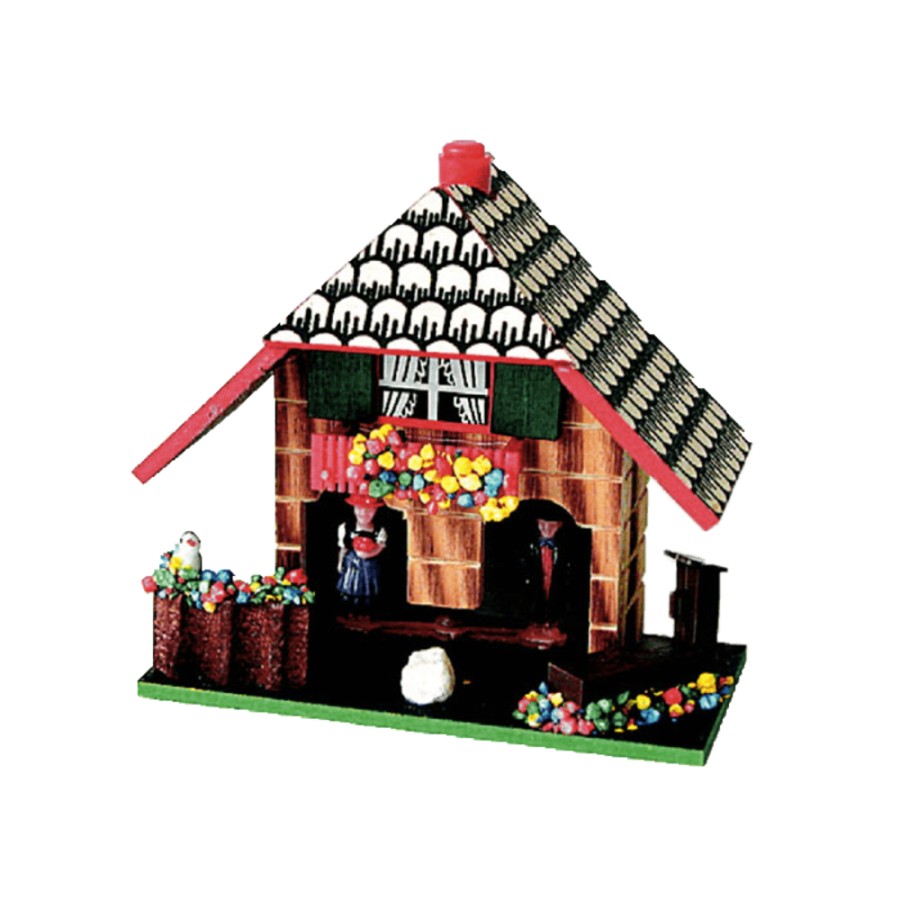 <p>Barometr v podobě pestrobarevné dřevěné chaloupky.