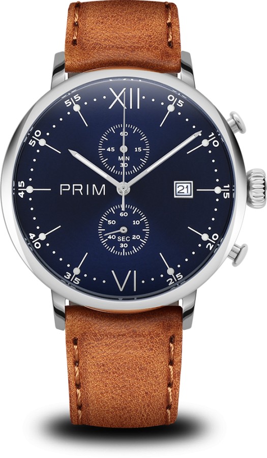 PRIM Chronoscope 25 Roman jsou elegantní a funkční hodinky s chronografem, které spojují společenský styl s minimalistickým designem. Minimalistický vzhled hodinek je navržen v typickém Bauhaus stylu s tištěnými indexy, které doplňují jemné luminiscenční prvky. Luminiscenční body na hodinových indexech a luminiscenční nátěr na hodinové a minutové ručičce zajišťují snadné čtení času i za šera. Hodinky jsou vybaveny osvědčeným japonským quartzovým strojkem OS11 a chráněny kvalitním dvojitě klenutým safírovým antireflexním sklíčkem, což dodává na jejich odolnosti a životnosti.