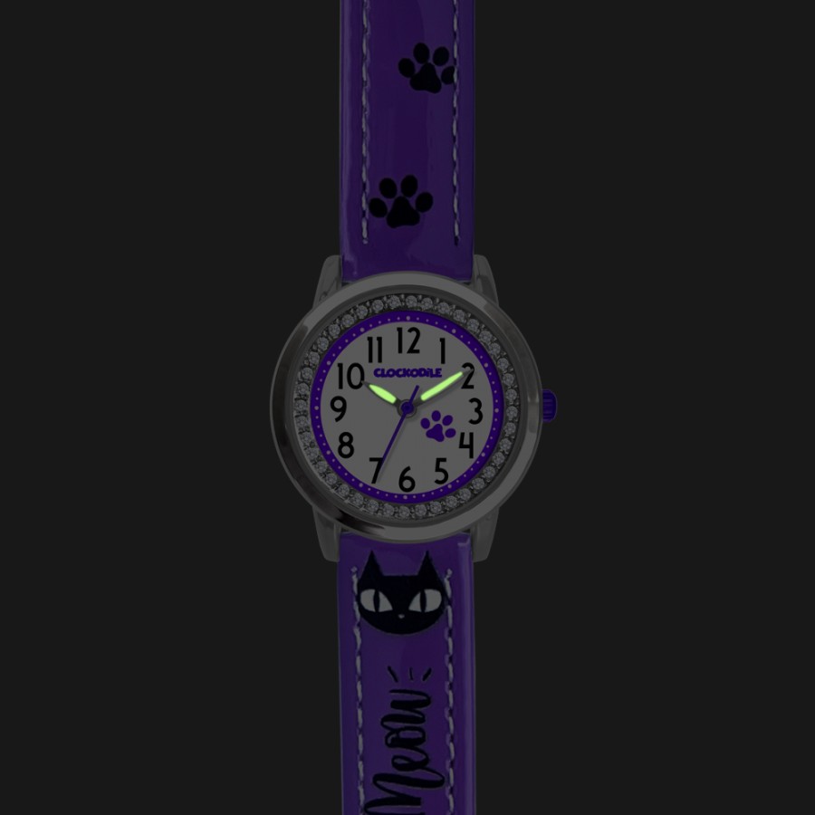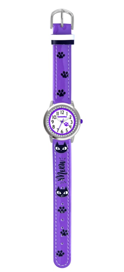 CLOCKODILE Fialové dívčí dětské hodinky KOČKY