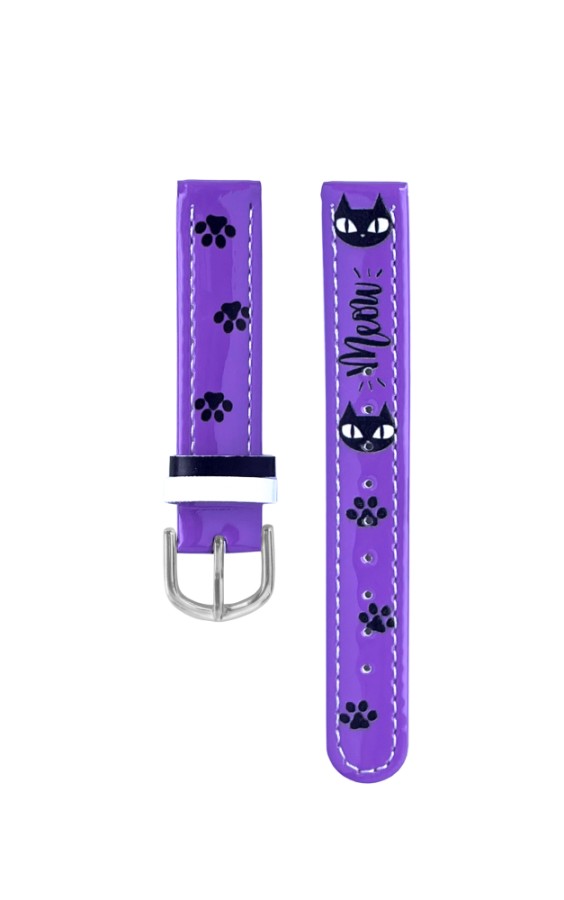 CLOCKODILE Fialový řemínek k dětským hodinkám kočky