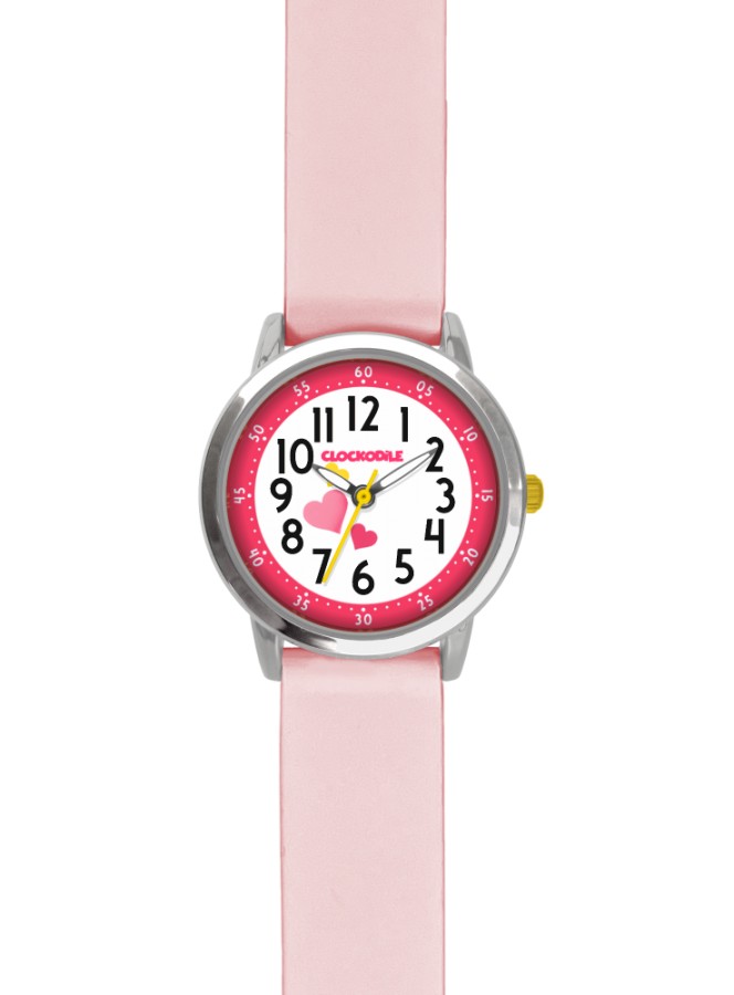CLOCKODILE Růžové dívčí dětské hodinky se srdíčky a světle růžovým silikonovým řemínkem