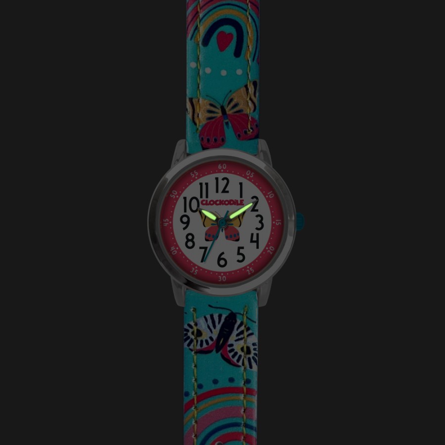 CLOCKODILE Tyrkysové dívčí dětské hodinky MOTÝL