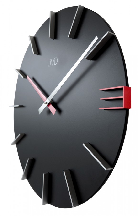Moderní dřevěné hodiny<br>Do moderního interiéru s červeně zvýrazněnou „trojkou“ a hodinovou ručkou je ideálním doplňkem pro každého, kdo touží po něčem neobvyklém.