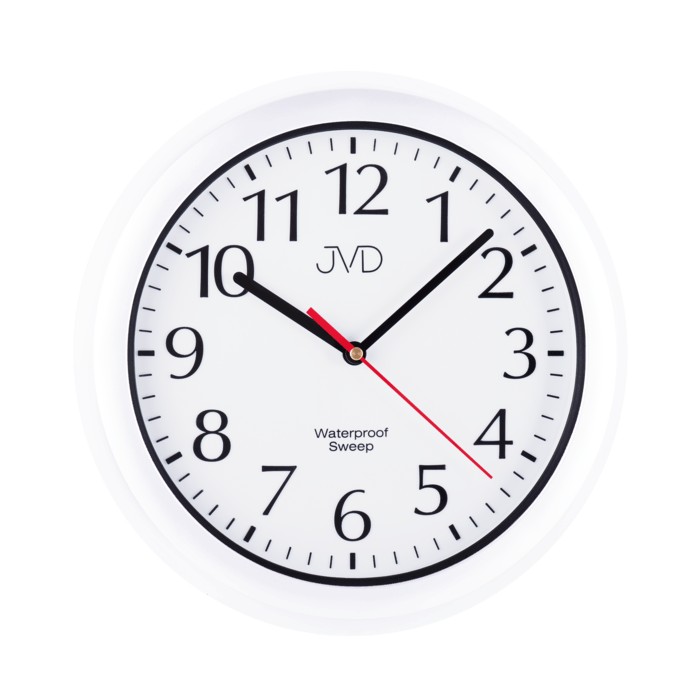 Nástěnné plastové hodiny do vlhkého prostředí - kuchyně, bazénu. Hodiny mají plynulý chod a průměr 30 cm.
