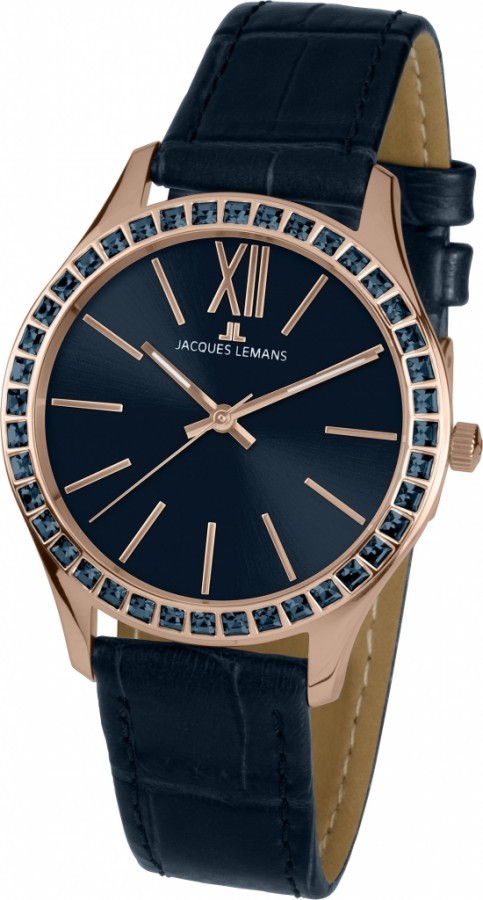 Pozlacené ručičky i číselník, ozdobený kamínky Swarovski.
