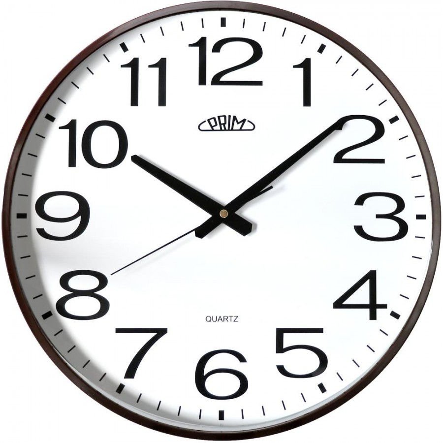 Hodiny PRIM s arabskými číslicemi v klasickém čistém designu v plastovém provedení s tichým a plynulým chodem.