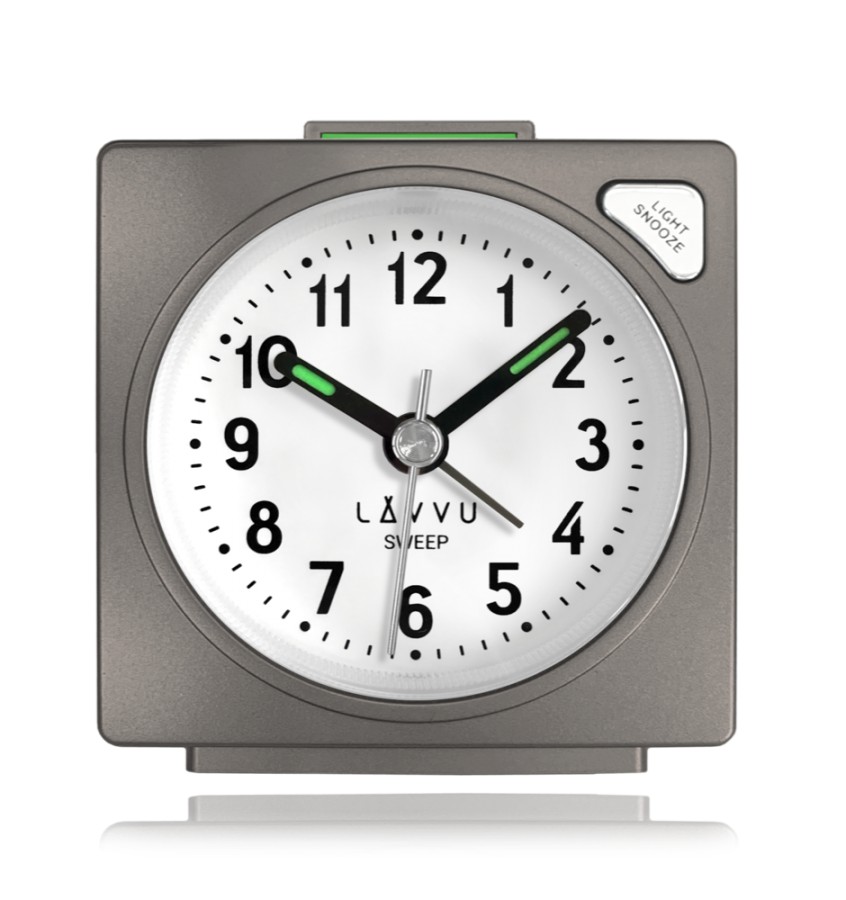osvětlení, snooze | opakováné zvonění po 4 min, ručičky svítí ve tmě | luminiscence, 1x budík