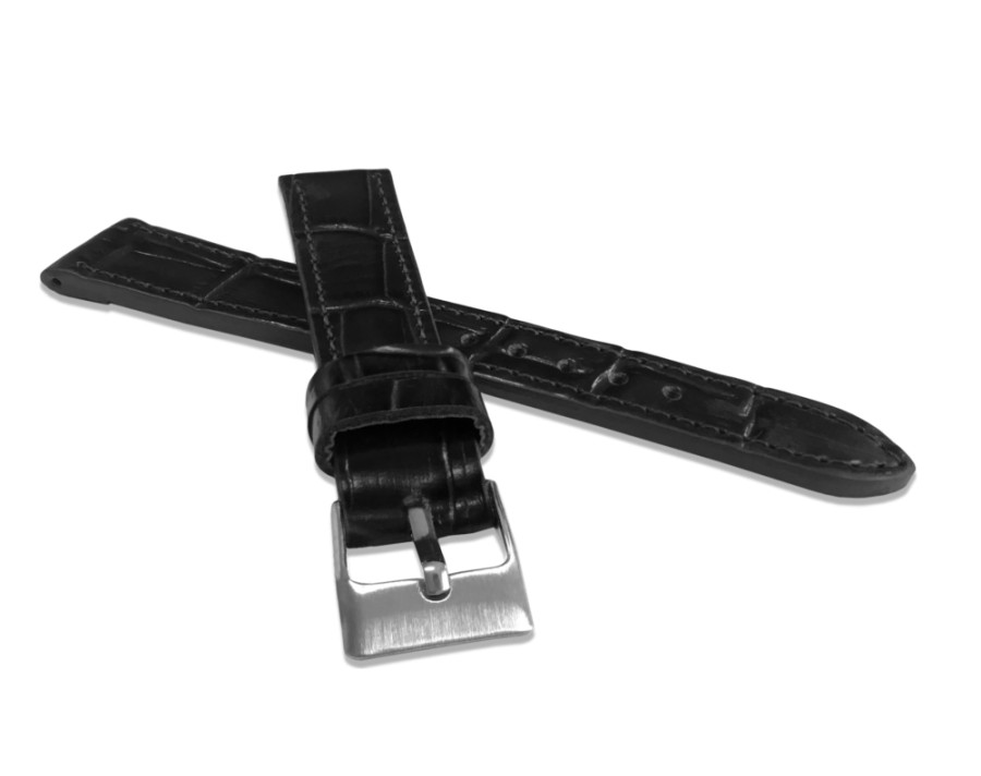 LAVVU Černý prošitý řemínek CROCO z luxusní kuže Top Grain - 12
