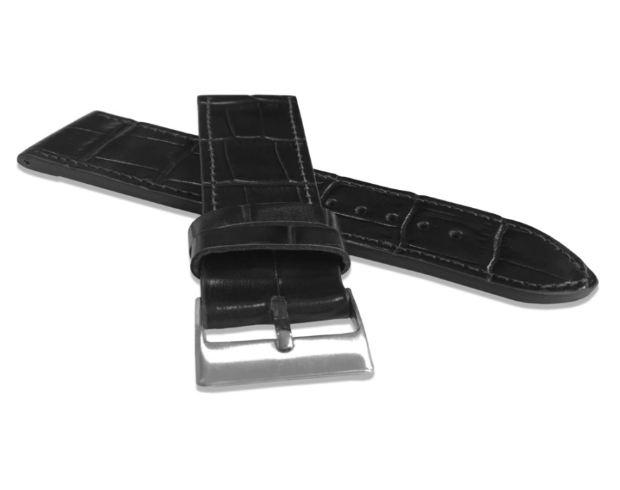 LAVVU Černý prošitý řemínek CROCO z luxusní kuže Top Grain - 22