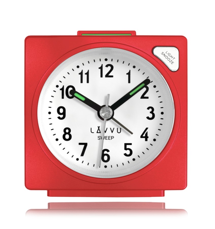 osvětlení, snooze | opakováné zvonění po 4 min, ručičky svítí ve tmě | luminiscence, 1x budík
