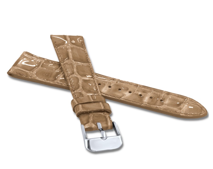 LAVVU Lesklý béžový prošitý řemínek CROCO OCALA z luxusní kůže Top Grain - 20