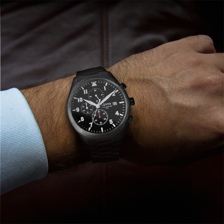 LAVVU Pánské titanové hodinky PILOT Chronograph Black 100M Sapphire