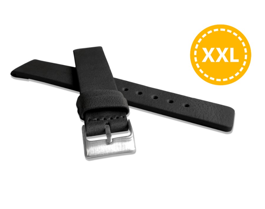 LAVVU XL Prodloužený černý hladký řemínek Plain z luxusní kůže Top Grain - 22 XXL