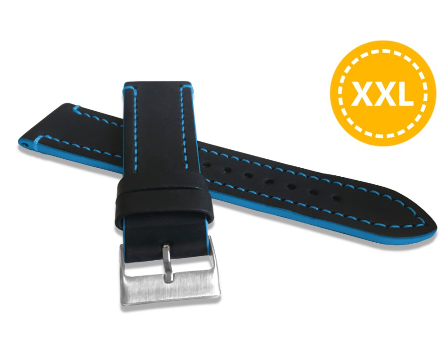 LAVVU XXL Prodloužený modře prošitý řemínek TAILOR z luxusní kůže Top Grain - 24 - XXL