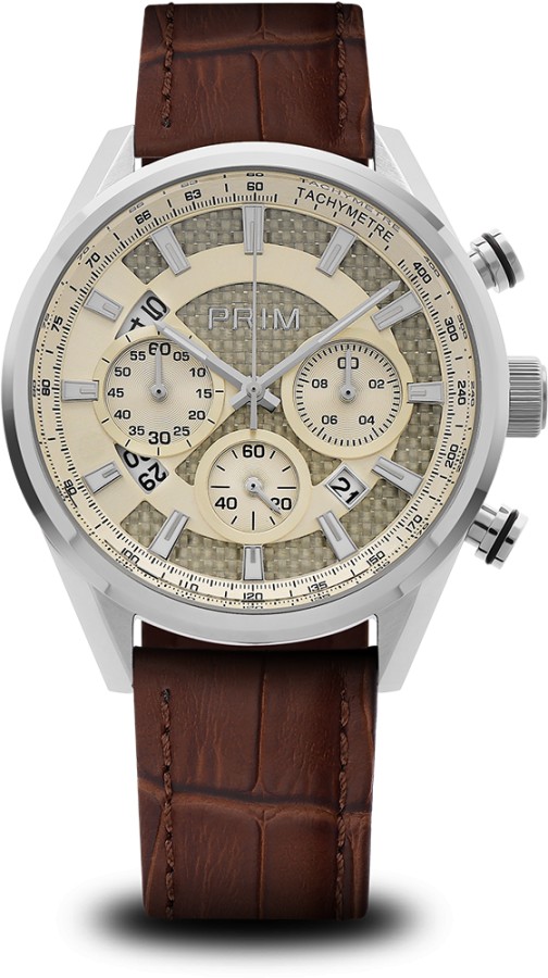 Populární model PRIM Master 25 s leštěným pouzdrem a moderním ciferníkem s chronografem oživí a zvýrazní image svého majitele. PRIM Master 25 – dokonalá rovnováha mezi sportovní dynamikou a nadčasovou elegancí, nyní s ciferníkem z uhlíkového vlákna (karbonu) pro ještě exkluzivnější vzhled. Hodinky, které podtrhnou váš styl a zaujmou na první pohled, doplňuje kvalitní prošívaný kožený řemínek. Každý kus je dodáván se svým výrobním číslem.
