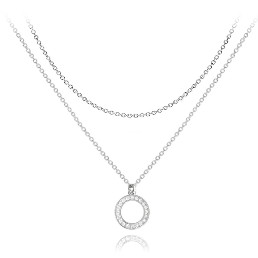 MINET Dvojitý stříbrný náhrdelník KROUŽEK s bílými zirkony