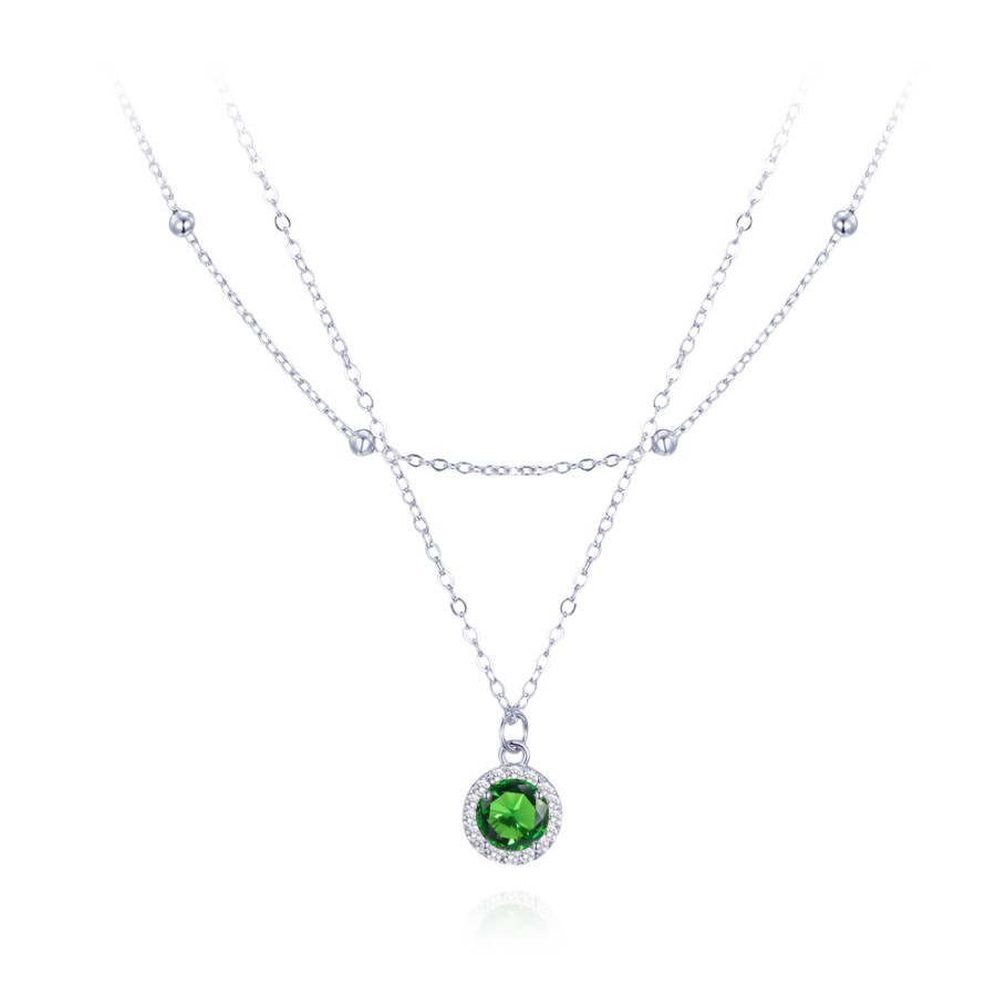 MINET Dvojitý stříbrný náhrdelník s bílými a zelenými zirkony