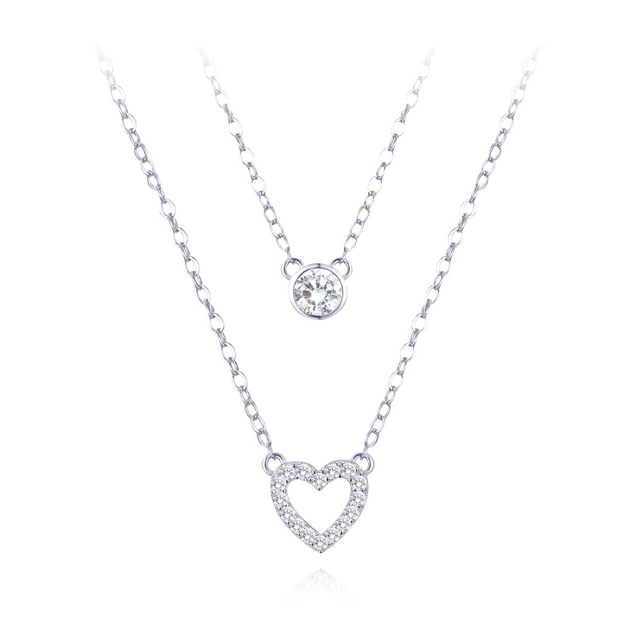 MINET Dvojitý stříbrný náhrdelník se srdcem a bílými zirkony