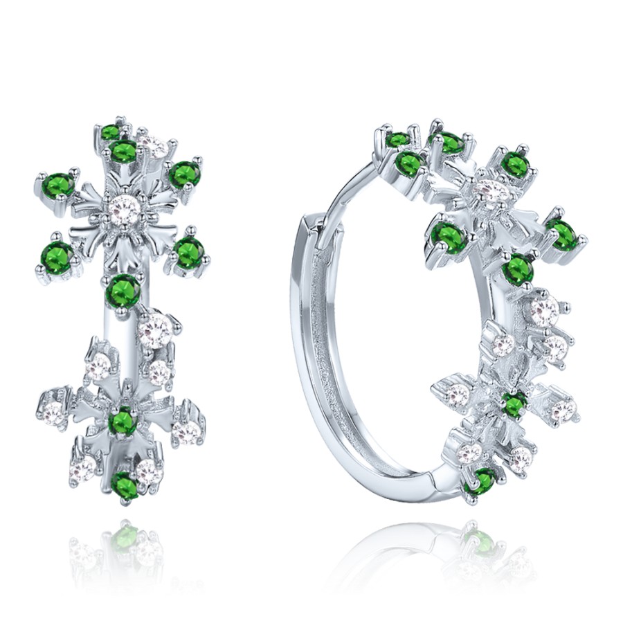 MINET Elegantní stříbrné náušnice vločky s bílými a zelenými zirkony