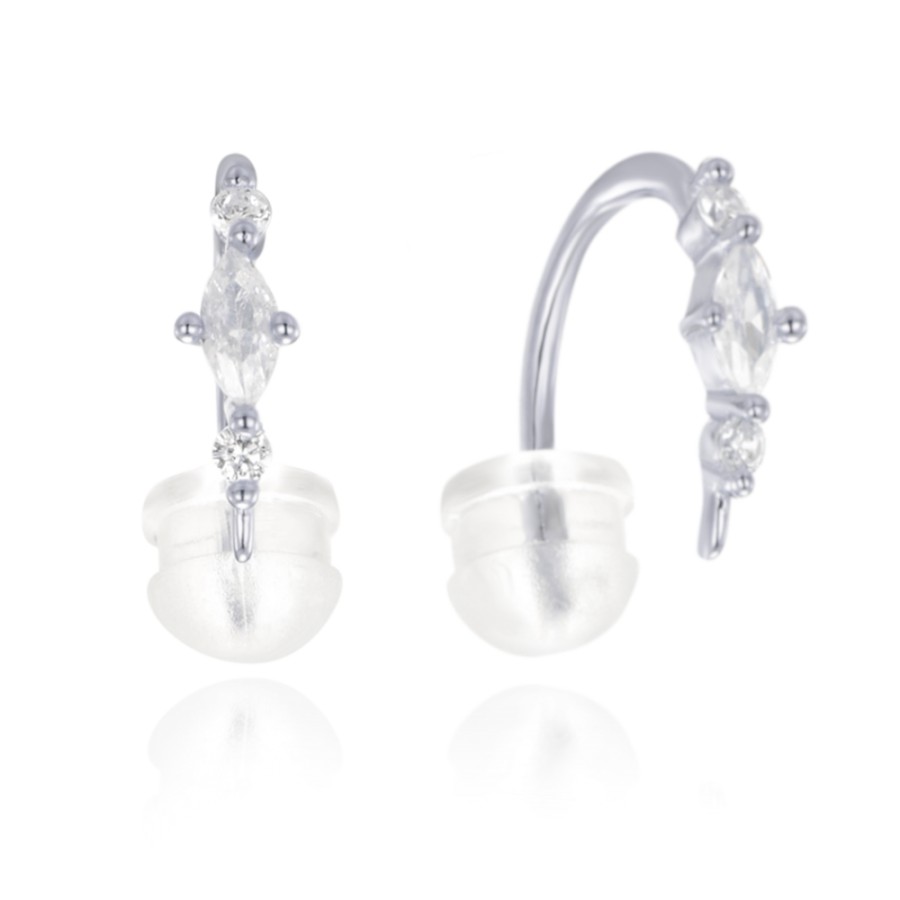 MINET Elegantní stříbrné protahovací náušnice s bílými zirkony