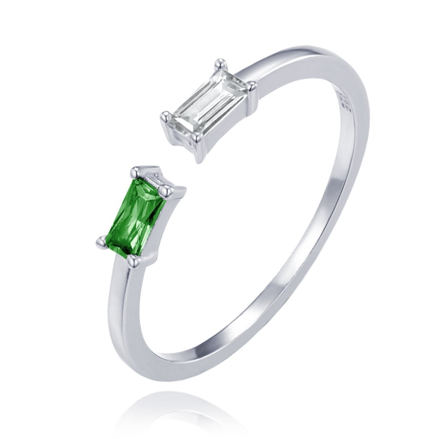 MINET Elegantní stříbrný prsten s bílým a zeleným zirkonem vel. 52