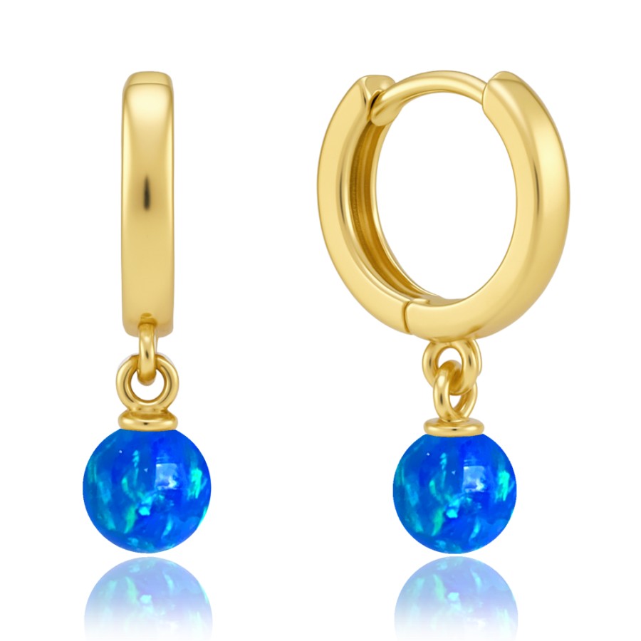 MINET Elegantní zlaté náušnice s modrým opálem Au 585/1000 1,15g