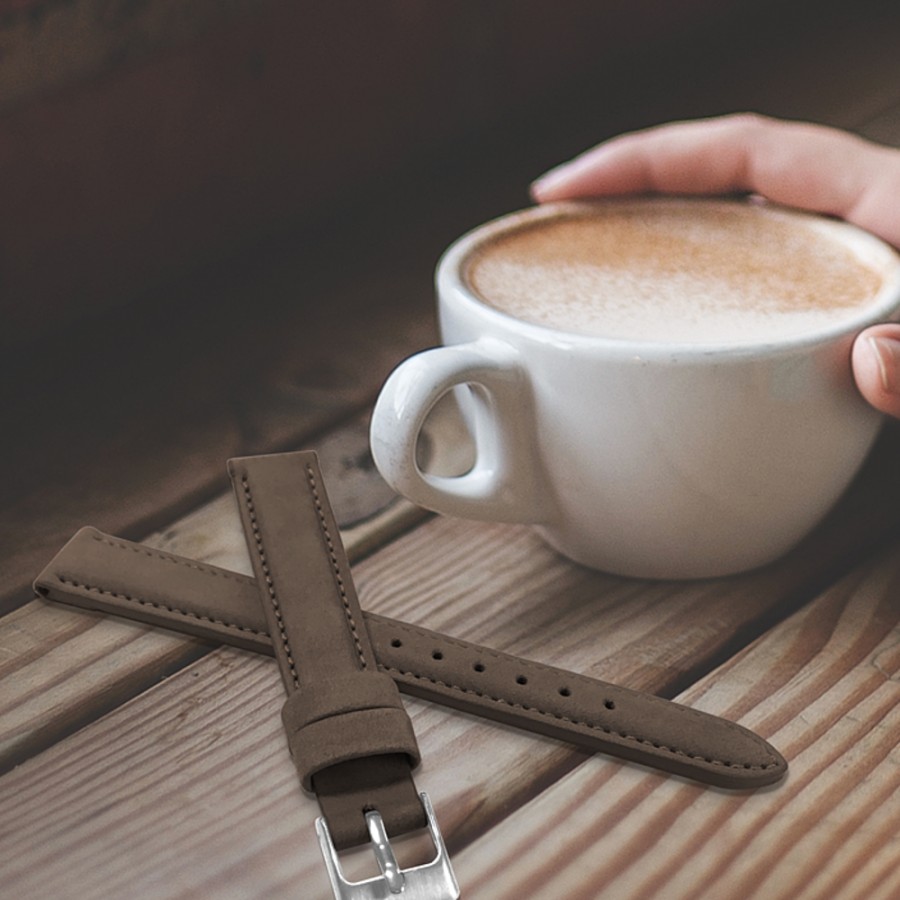 MINET Kávově hnědý prošitý kožený řemínek z jemného nubuku - 14