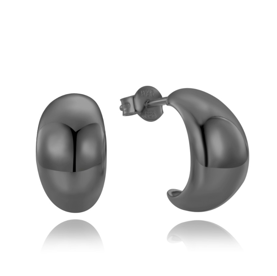 MINET Moderní černé stříbrné náušnice zahnuté kapky