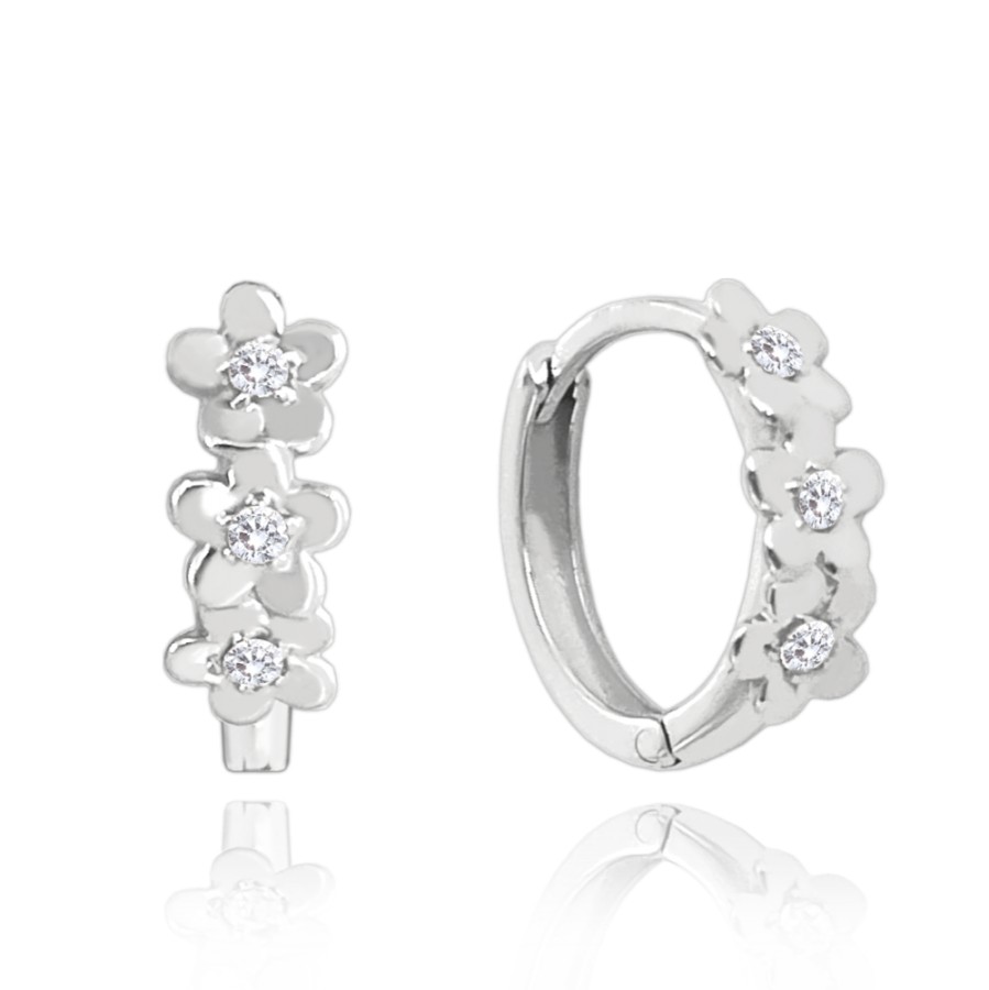 MINET Náušnice z bílého zlata kytičky s bílými zirkony Au 585/1000 1,45g