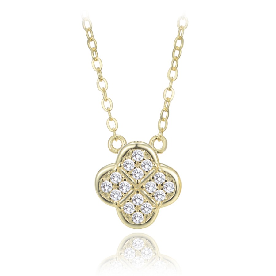 MINET Pozlacený stříbrný náhrdelník čtyřlístek s bílými zirkony