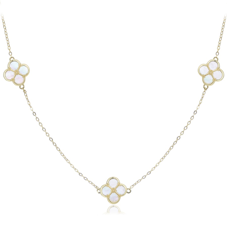 MINET Pozlacený stříbrný náhrdelník čtyřlístky s bílou perletí