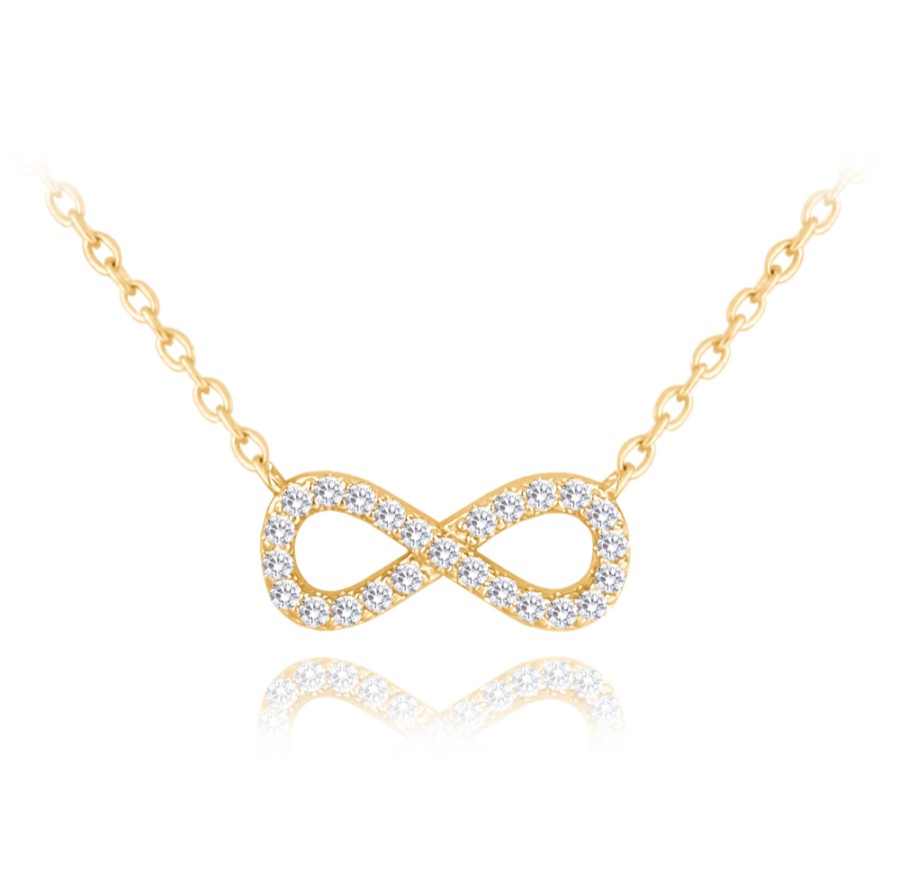 MINET Pozlacený stříbrný náhrdelník NEKONEČNO s bílými zirkony