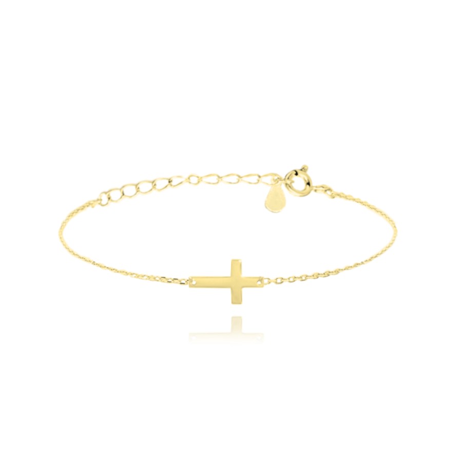 MINET Pozlacený stříbrný náramek KŘÍŽ ležatý