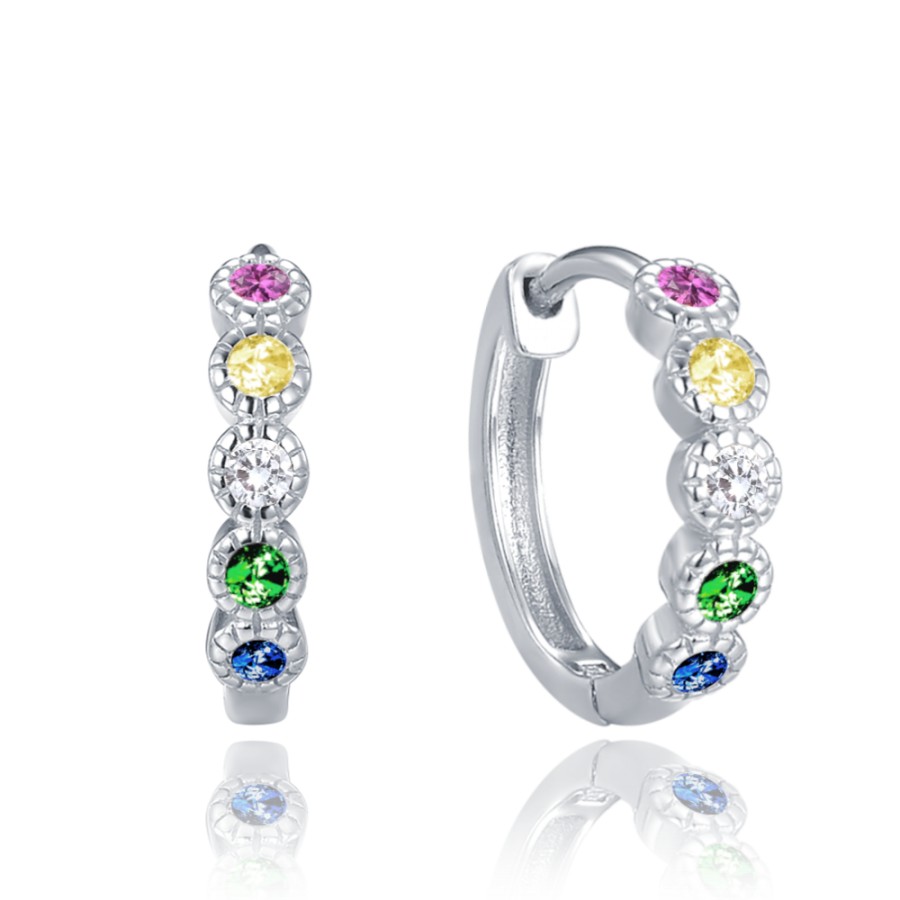 MINET Stříbrné náušnice kroužky s různobarevnými zirkony