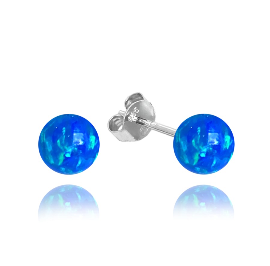 MINET Stříbrné náušnice KULIČKY s tmavě modrými opálky 6mm