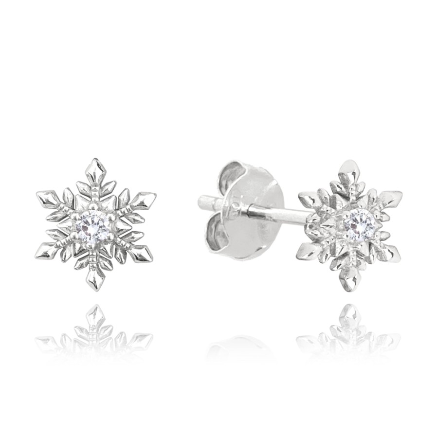 MINET Stříbrné náušnice SNĚHOVÉ VLOČKY s bílými zirkony