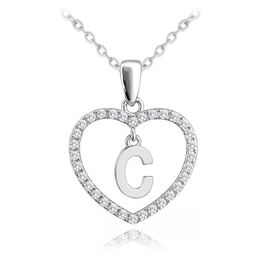 MINET Stříbrný náhrdelník písmeno v srdíčku "C" se zirkony