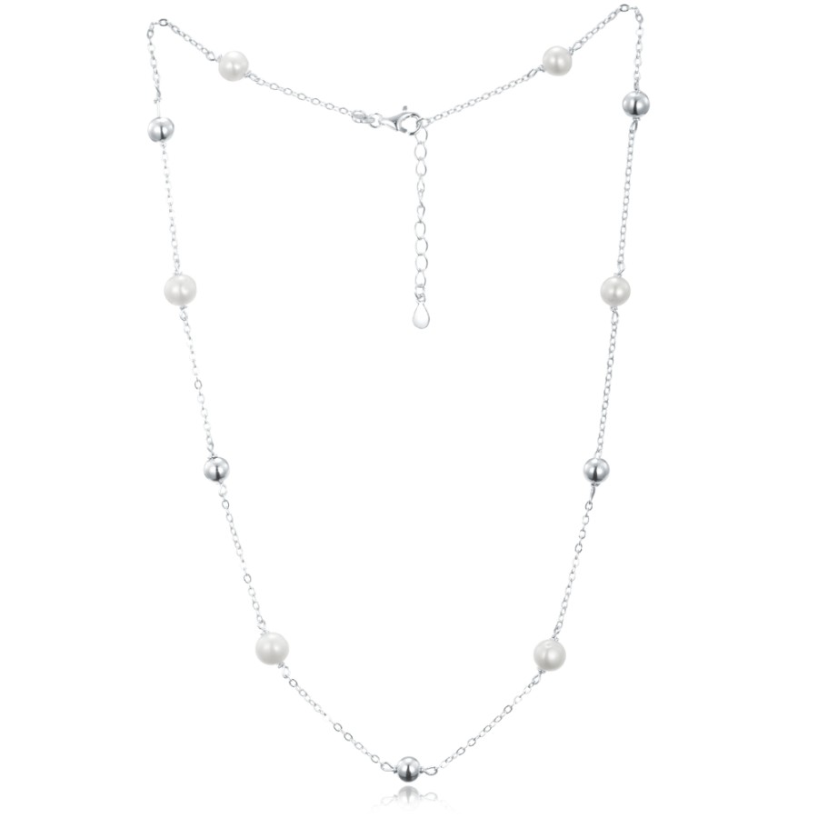 MINET Stříbrný náhrdelník s kuličkami a přírodními perlami MINET Stříbrný náhrdelník s kuličkami a přírodními perlami