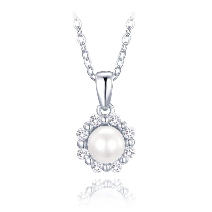 MINET Stříbrný náhrdelník s přírodní perlou a bílými zirkony