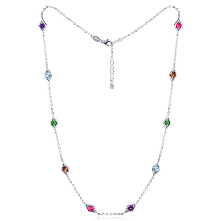 MINET Stříbrný náhrdelník s různobarevnými kamínky
