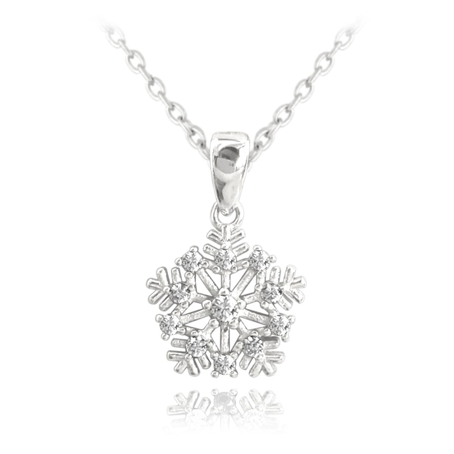 MINET Stříbrný náhrdelník SNĚHOVÁ VLOČKA s bílými zirkony
