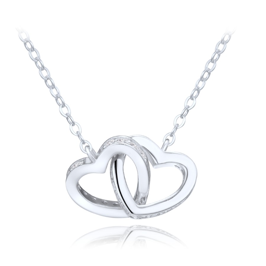 MINET Stříbrný náhrdelník spojená srdíčka s bílými zirkony
