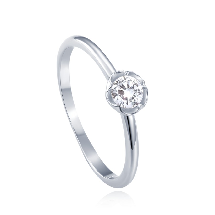 MINET Stříbrný prsten kytička s bilým zirkonem vel. 46