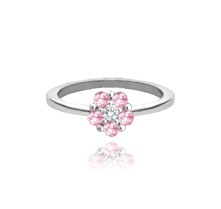 MINET Stříbrný prsten KYTIČKA s růžovými zirkony vel. 48