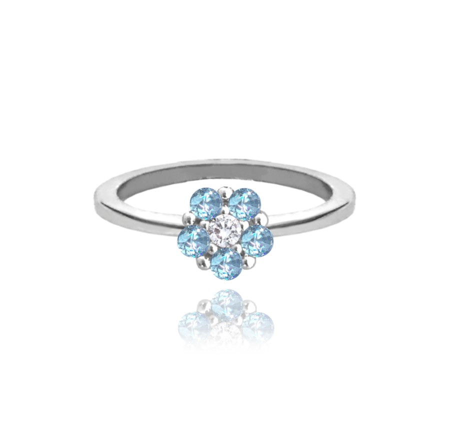MINET Stříbrný prsten KYTIČKA se světle modrými zirkony vel. 50