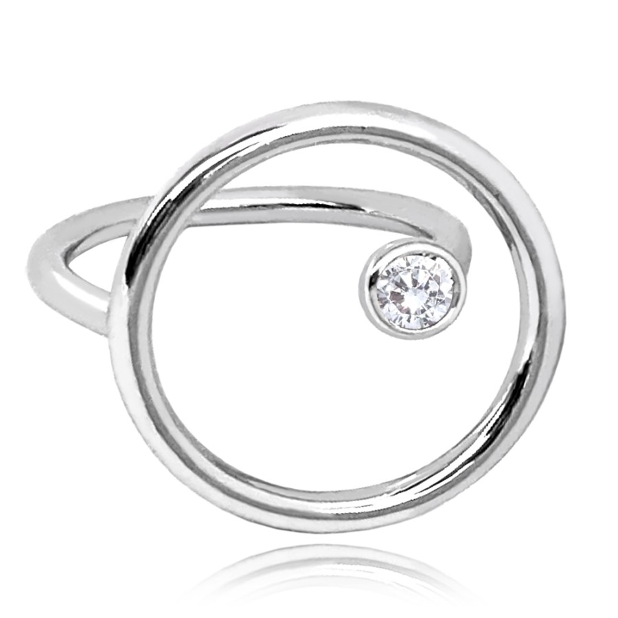 MINET Stříbrný prsten otevřený KROUŽEK se zirkonem vel. 60