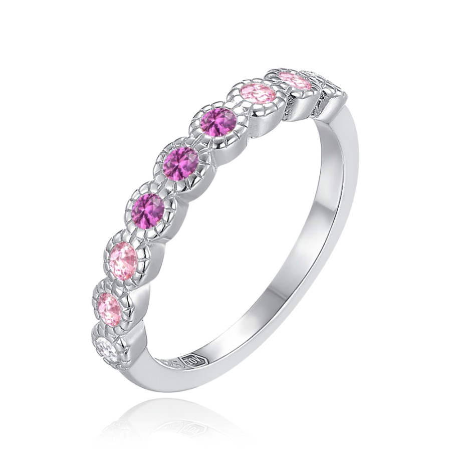 MINET Stříbrný prsten s bílými, růžovými a červenými zirkony vel. 52