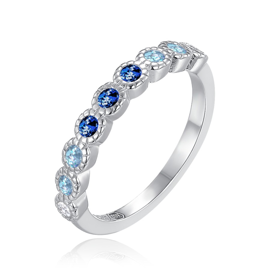 MINET Stříbrný prsten s bílými, světle modrými a tmavě modrými zirkony vel. 48