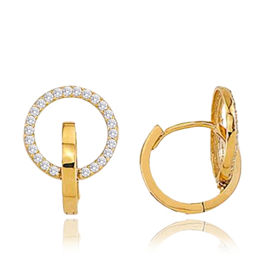 MINET Zlaté náušnice kroužky s bílými zirkony Au 585/1000 2,20g